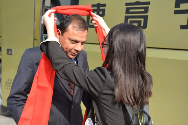 早上10:00分,大家乘坐由維多利公司統(tǒng)一安排的大巴到達(dá)活動(dòng)現(xiàn)場(chǎng),一下車(chē)入目全是各種寫(xiě)著“維多利科技(江蘇)有限公司開(kāi)業(yè)大吉”的橫幅和彩帶,一進(jìn)門(mén)熱情的維多利迎賓姑娘們立即為遠(yuǎn)道而來(lái)的客人獻(xiàn)上溫暖的紅色圍巾。