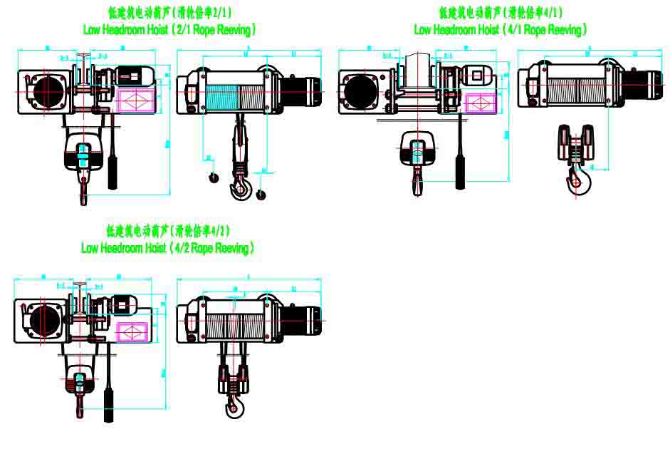 | 低建筑小車式電動葫蘆參數表Technical data of Low-headroom Hoist | ||||||||||||||||||