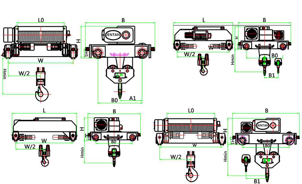 雙梁小車式電動(dòng)葫蘆參數(shù)表(二)Technical data of Double-girder Hoist