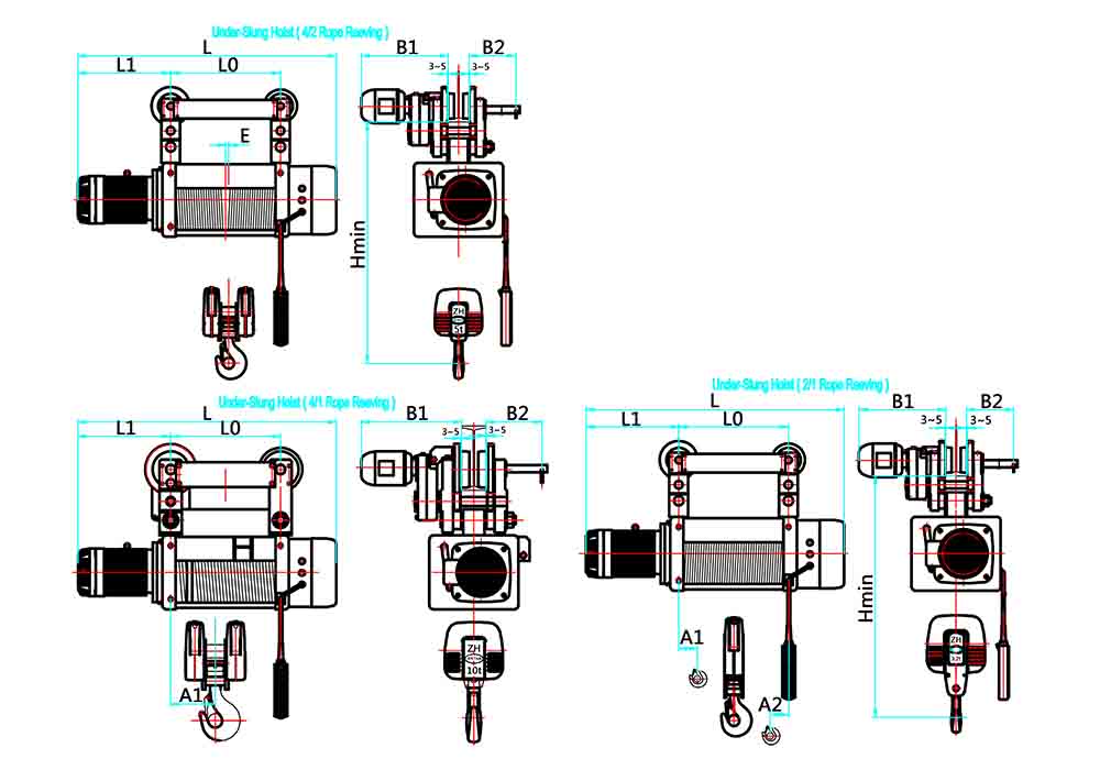 | 懸掛小車式電動葫蘆參數表 Technical data of Under-slung Hoist | ||||||||||||||||||