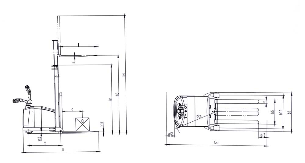 Lowered Mast Height h1(mm) 1830/2080/2330/2580/2080/2250/2420