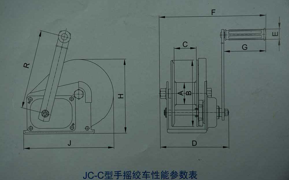 | JC-C型手搖絞車性能參數(shù)表 JC-C WINCH SPEIFICATIONS | |||||