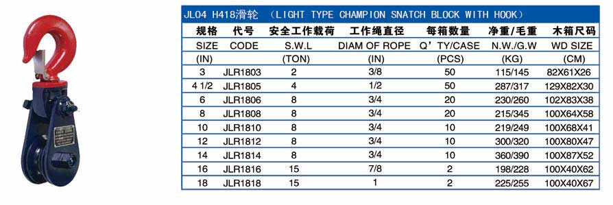 TypeHook S.W.L. Sheave DlaD A2 B C For WIRE Dia N.W.