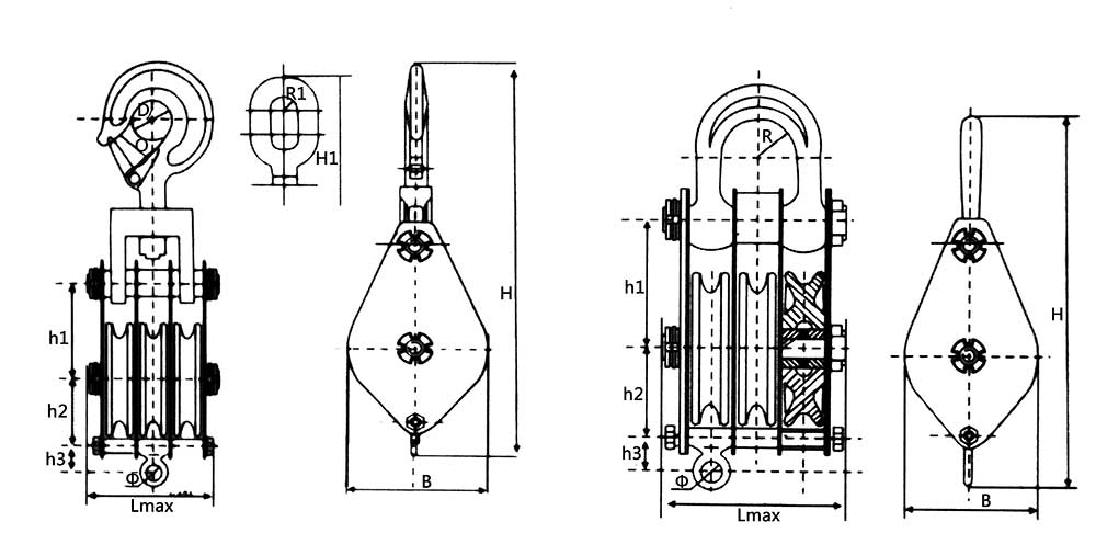 玉 田 款 吊 鉤 ( 鏈 環 ) 型 閉 口 式 三 輪 滑 車 |