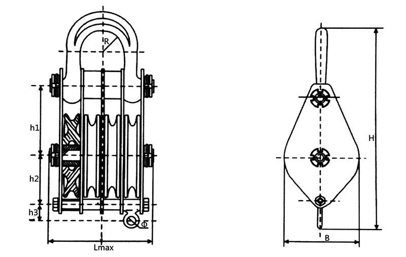 | H | H1 | B | Lmax | Φ | 適用 | 最大 | D | O | R1 | R | |||||