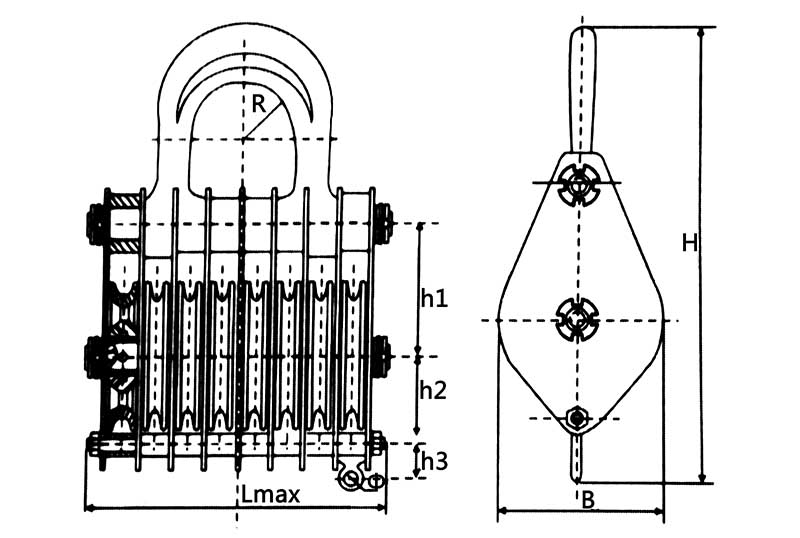 | 玉田款 吊鉤(鏈環)型閉口式八輪滑車 | Model | t | KN | mm | mm | kg | |||||||||