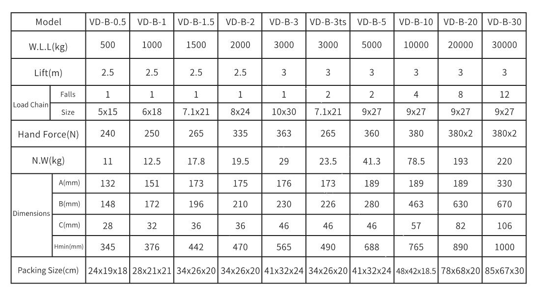 1.超載限制器 2. 不銹鋼手拉鏈 3. 高質(zhì)量專用鏈帶 4. 100級(jí)載重鏈